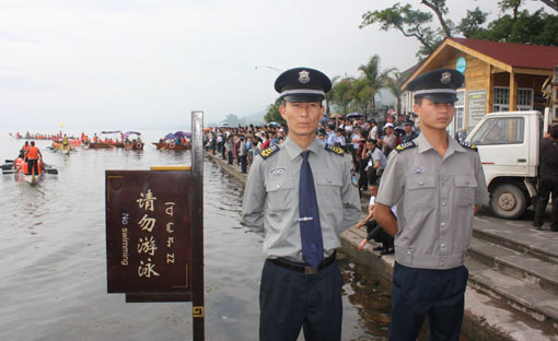 本网讯(龙霄)2012年“端午节”期间,西昌市于6月22日至24日在邛海举办2012中国·西昌邛海第四届龙舟节。期间,月色风情小镇将举办开幕式、祭龙、点睛、接龙仪式、龙舟拔河比赛、抢鸭子等多项赛事和活动。为确保各项活动安全顺利进行,保安公司高度重视,精心谋划,周密部署,全力投放入到安保工作中去,圆满完成此次龙舟赛安全保卫工作,受到赛会组委会、全体运动员、裁判员和群众的一致好评。